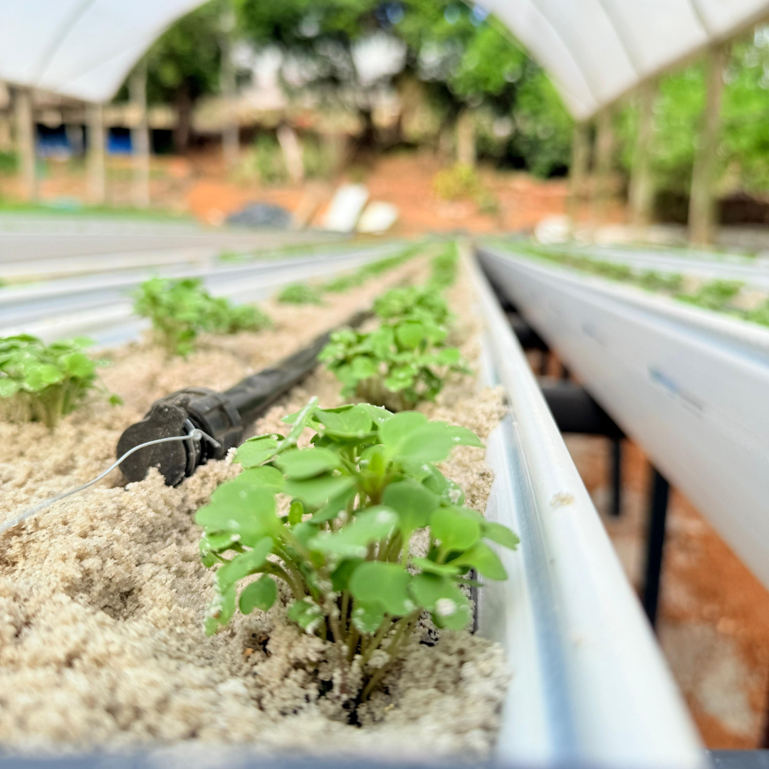 Nossa estrutura de hidroponia tem capacidade de produção de até 100 mil unidades por mês, garantindo volume constante e qualidade em todas as colheitas.